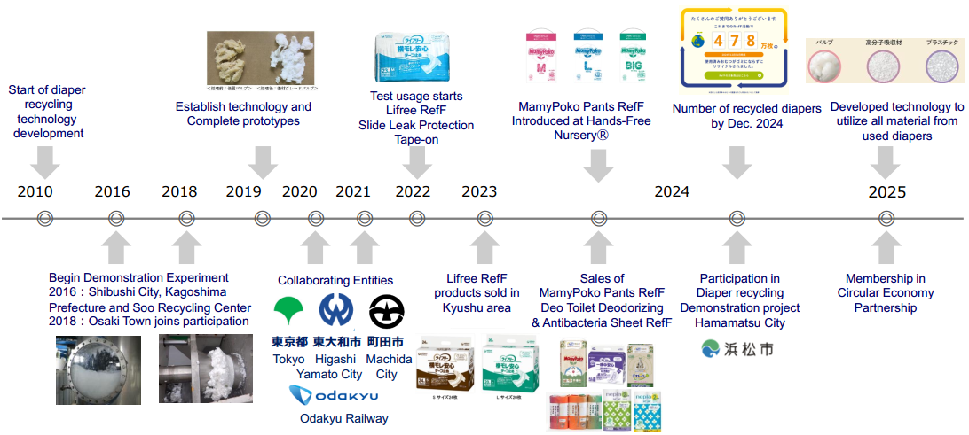 The recycled materials are used in a wide range of products, including baby care, elder care, and pet care items, demonstrating a consumer-centric approach to realizing a circular society.