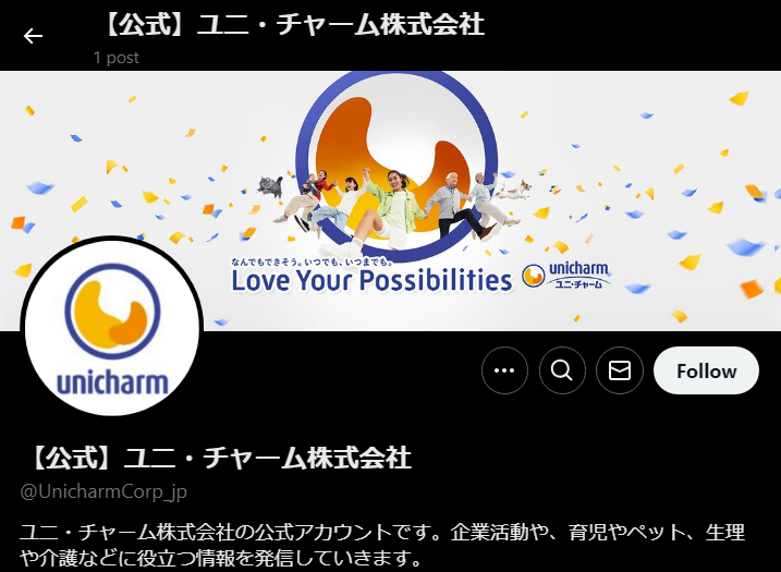 ユニ・チャーム、『X(旧Twitter)』にて公式アカウントを開設しました
