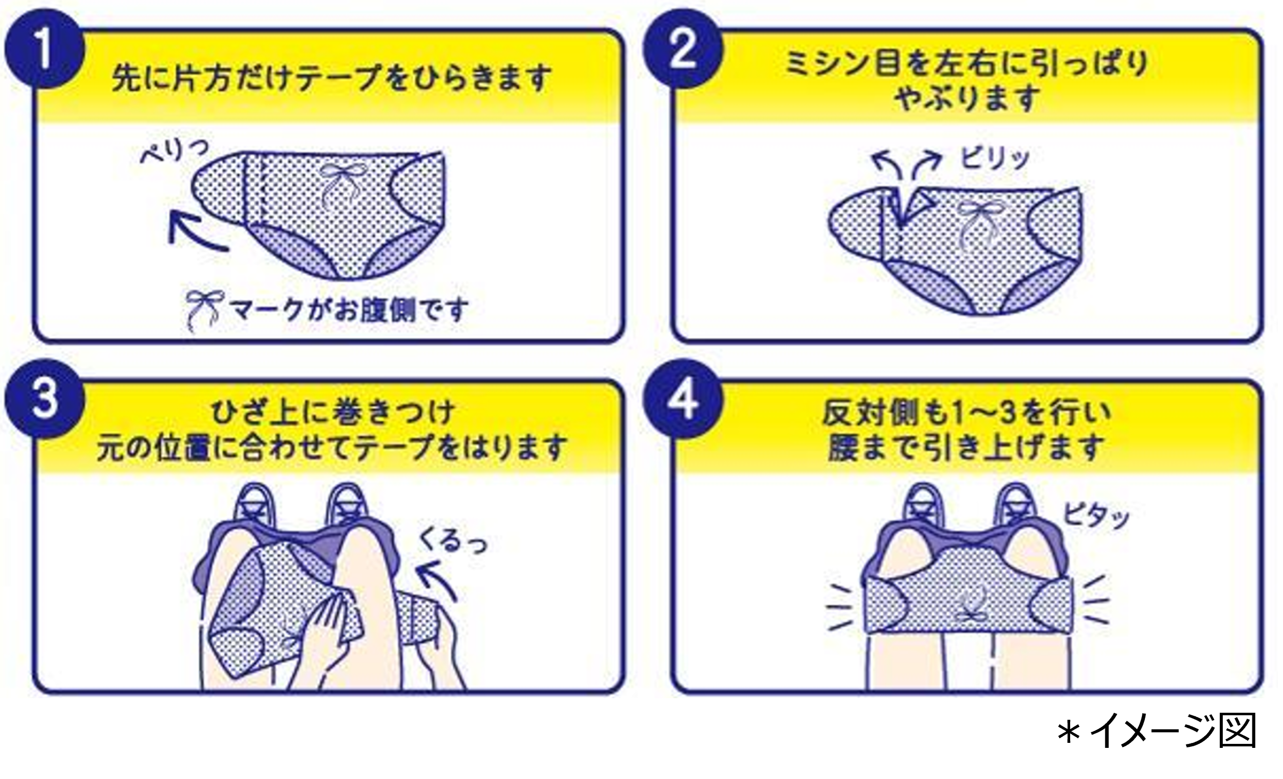 ③ ひざ上に巻きつけ、元の位置に合わせてテープを貼ります。