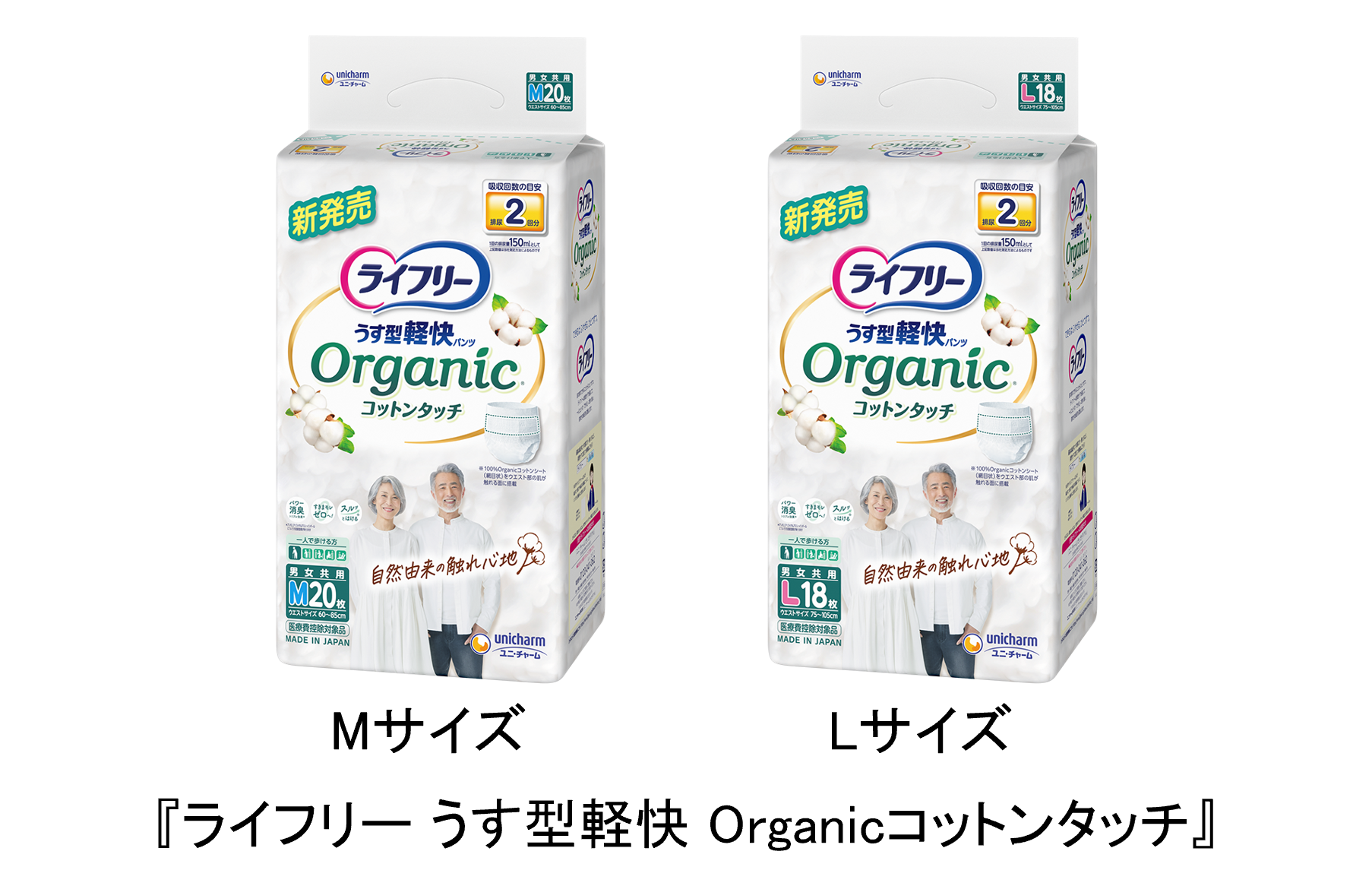 ユニ・チャーム株式会社(代表取締役 社長執行役員:高原 豪久)は、自然由来の「オーガニックコットン100%シート(網目状)」を搭載し、やさしいはき心地を実現した『ライフリー うす型軽快パンツ Organicコットンタッチ』を、2025年10月上旬より全国で発売します。
