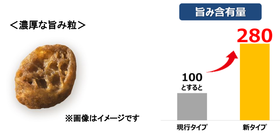 (1)Frecious史上最高のおいしさを実現した、お肉の旨みが従来の3倍の「濃厚な旨み粒」